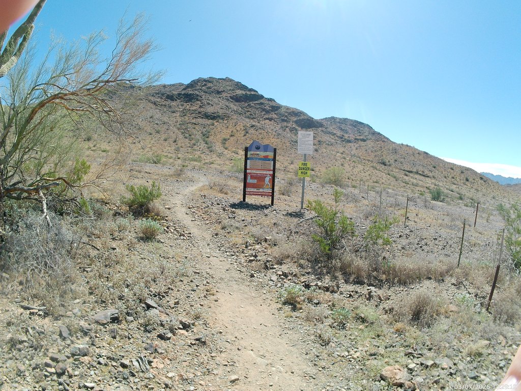We (my son joined me) parked one car at the Curtis Saddle “Trailhead”. We only call it a trailhead because it is so marked upon a map. At the eastern dead-end of Estrella Drive, just east of 43rd Ave, where it turns to dirt, you can find several places to park along the barbed wire fence lining the south side of the road. There are no services.
