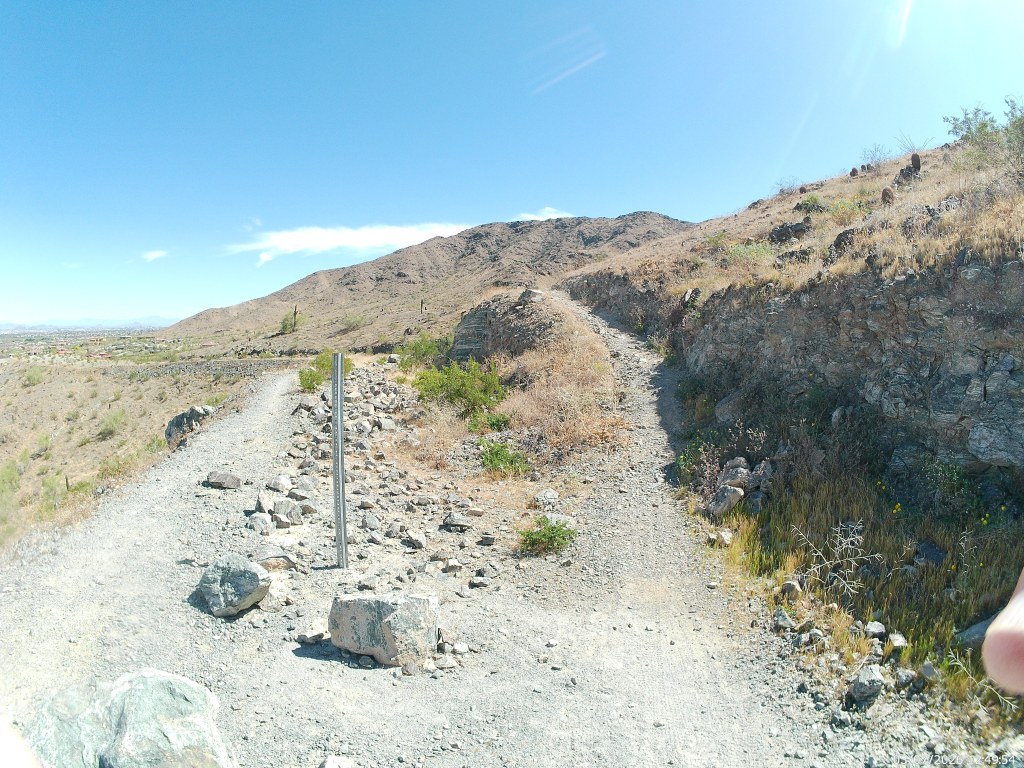 Los Lomitas Trail in South Mountain Preserve is the connector trail between the middle of the developed picnic lands and the giant parking lot that separates the conference center from the group picnic grounds. It is the third and final leg of my South Mountain Infrastructure Loop.