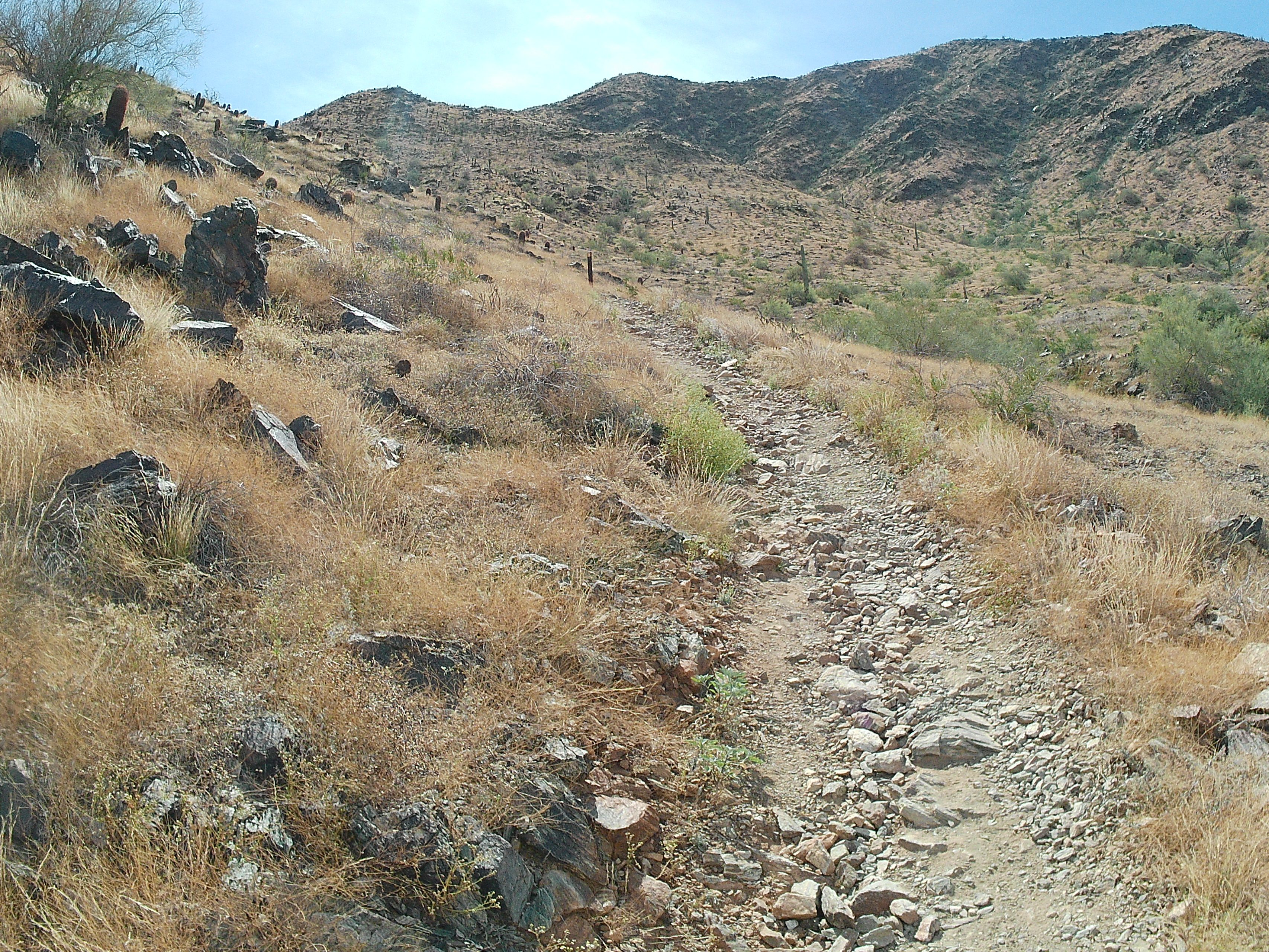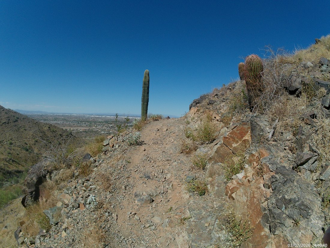 This is the toughest trail in the Phoenix South Mountain Preserve. It is also one of the more lightly used one, as, aside from the difficulty, none of its access points are from parking lots. Originally built by CCC and convict labor in the 1930’s , it is one of the oldest existing trails in the park. And one of the best – if you’re up for it.