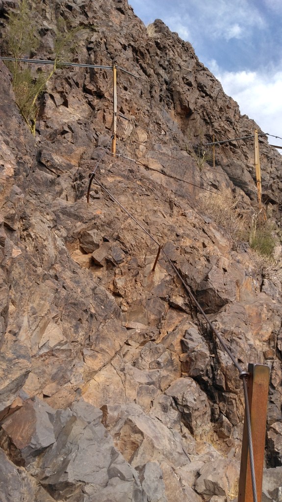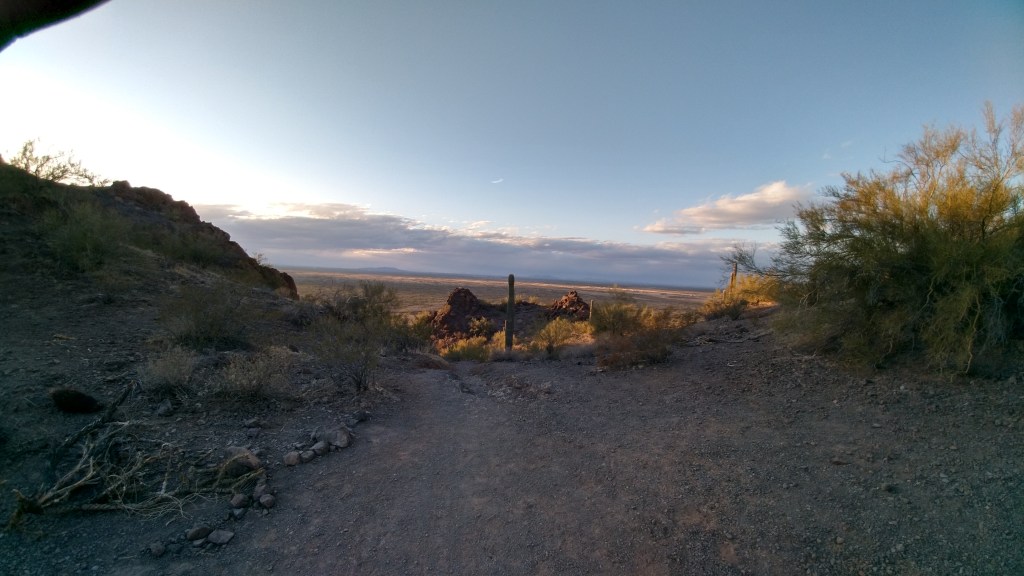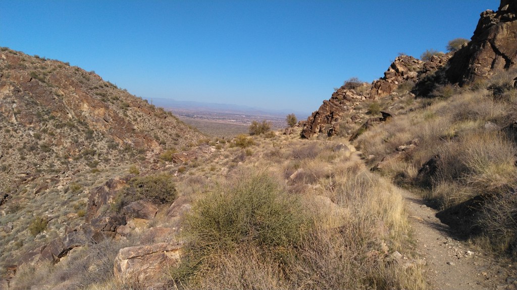 The Bajada Trail winds up and across its namesake across the San Juan Valley in the Phoenix South Mountain preserve. Or, rather, the main western portion des this. The eastern third of the trail is basically a connector trail we have written about elsewhere.