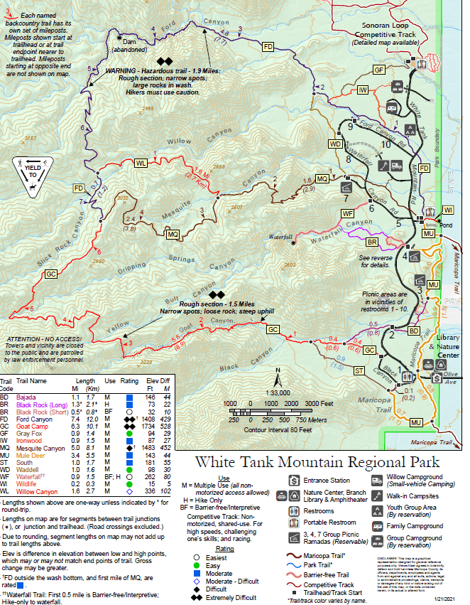 The route is National Trail of Bajada Trail to the bike center – a route that is about 4.3 miles one way. Most people can do it in a couple of hours.