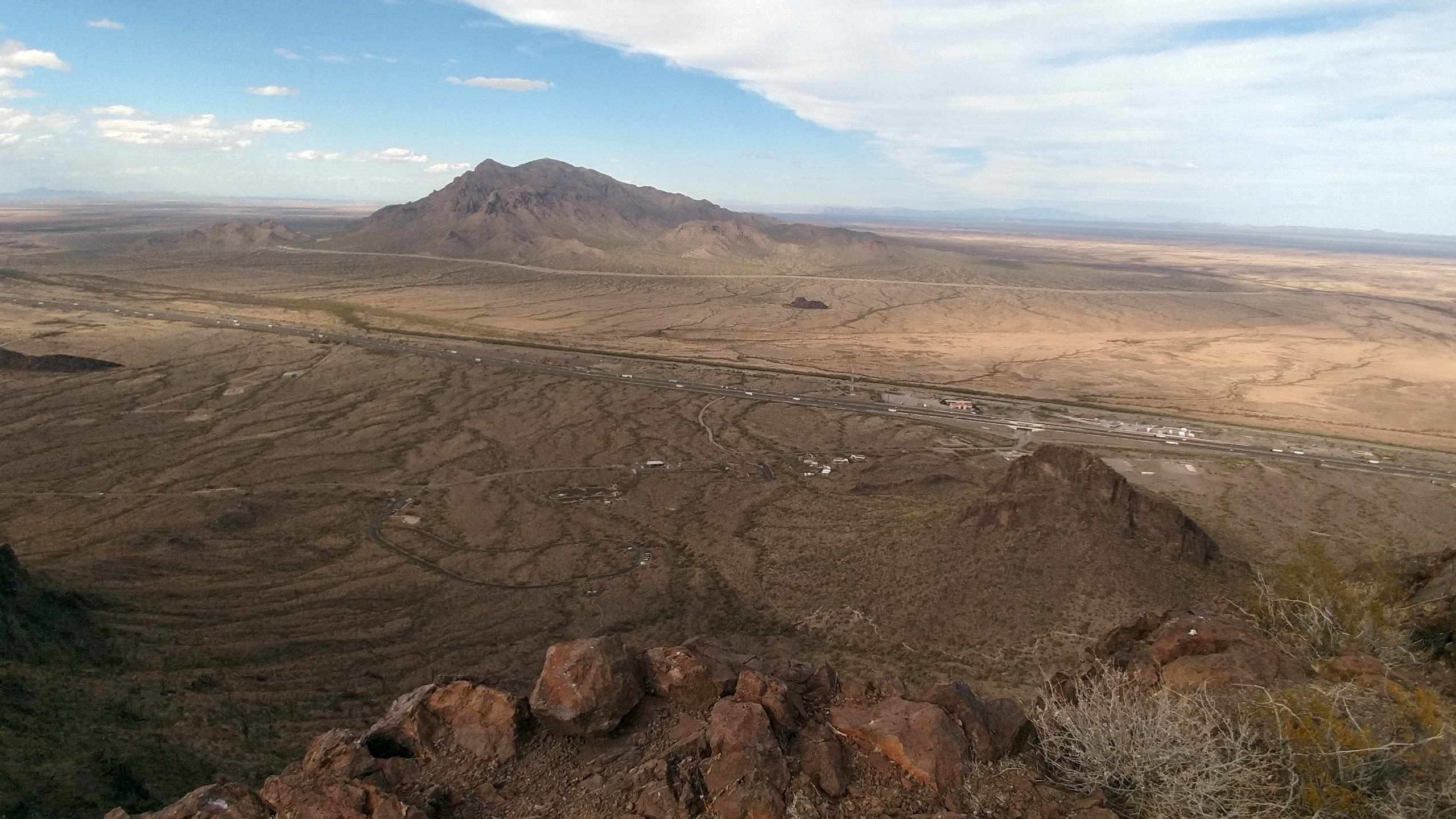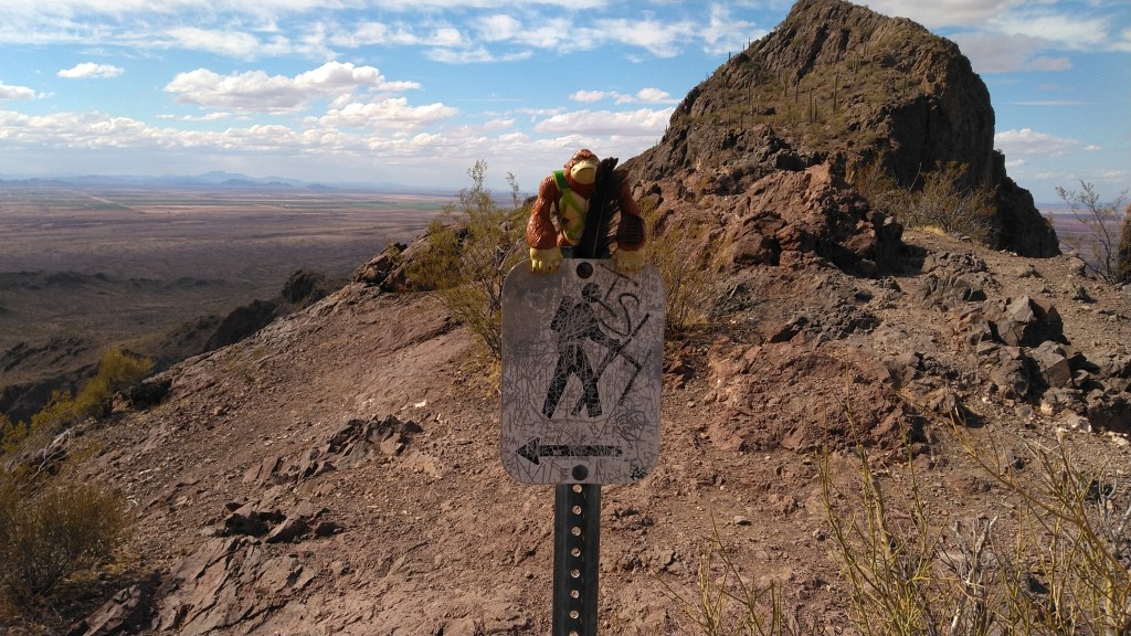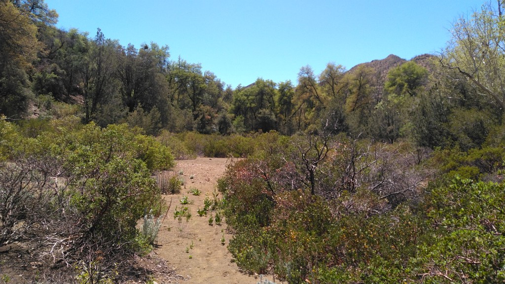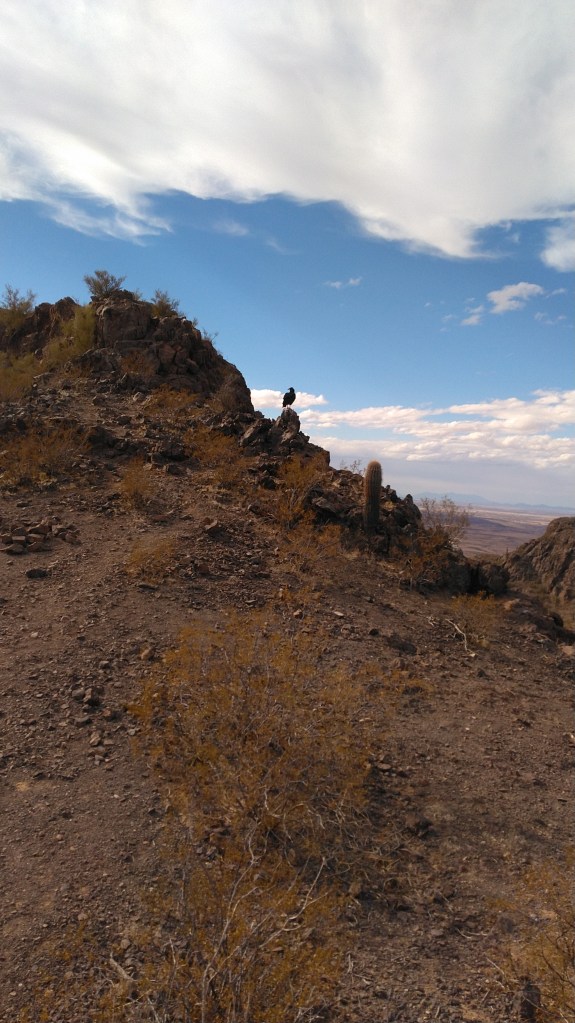 The National Trail, also called the Maricopa Trail heads off further southwest until it turns east and charges up the main Gila Range to the top ridge. It will continue east across that ridge to the other end of the park.