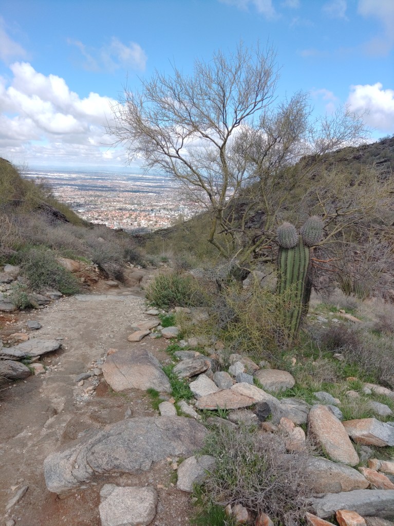 As I stare at the Phoenix South Mountain Preserve, the ridgetop immediately east of Dobbins Lookout also has a stone structure upon it that I can see from my house. As a side-quest to the Holbert Trail I decided to seek it out.